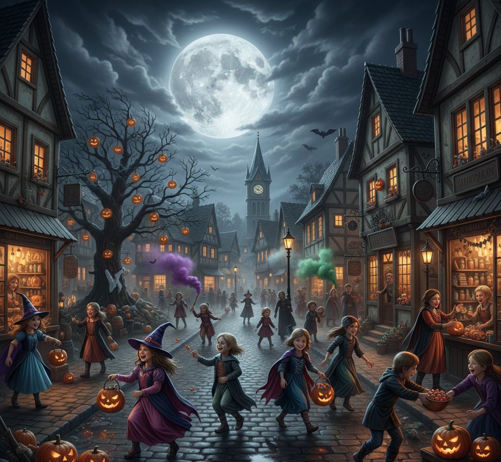 It's a scary Halloween night in the fantasy realm. All the kids are out trick or treating through the town. Candies, commotions, and festivities are everywhere. During this time of joy and play, our heroes confront a dark mysterious force.