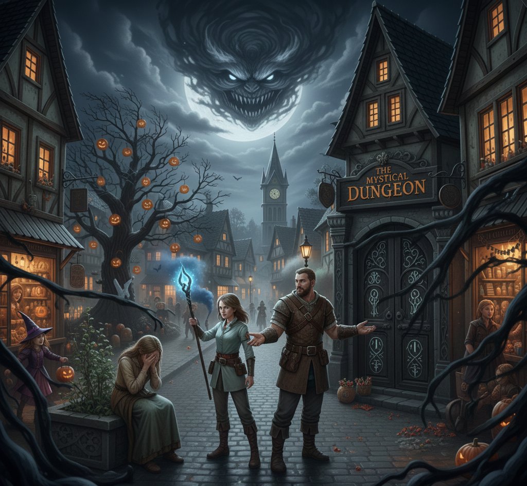 To motivate the characters to enter the dungeon, introduce a weeping mother on the side of the street. When the characters inquires the about the trouble, the mother will explain that her children entered the "Mystical Dungeon" shop, but has not returned. She has been unable to open the door and enter the shop herself to retrieve her children.
